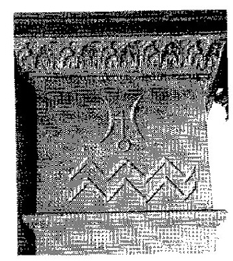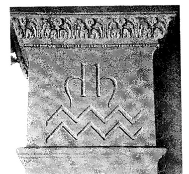 6. Detalhe do capitel da pilastra sul com o símbolo de duplo Saturno. significando o aspecto disciplinar do serviço aquariano.