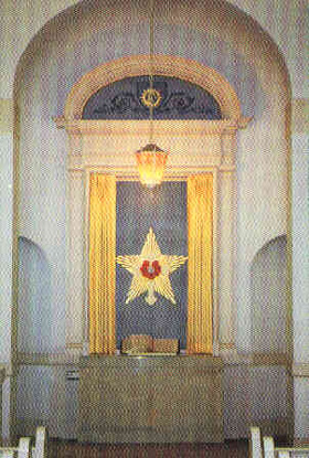 12.Vista do Altar, mostrando a lâmpada oitavada suspensa na abóbada da parede oriental, simbolizando o amor ardente do aspirante.