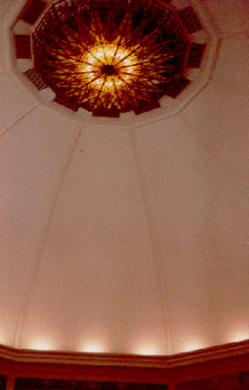 Hoje, estando na parte mais à leste do ponto Ecclésia, voltados para o oeste, olhamos diretamente para a metade oriental do Templo. Vemos seu grande domo encimado por uma cúpula e acima dela, um grande globo dourado e finalmente um aglomerado de luzes. O bonito simbolismo expresso por esses objetos, nós iremos ver depois de examinarmos outro símbolo encontrado no baldaquino, o dossel sobre o Altar no Santuário do templo